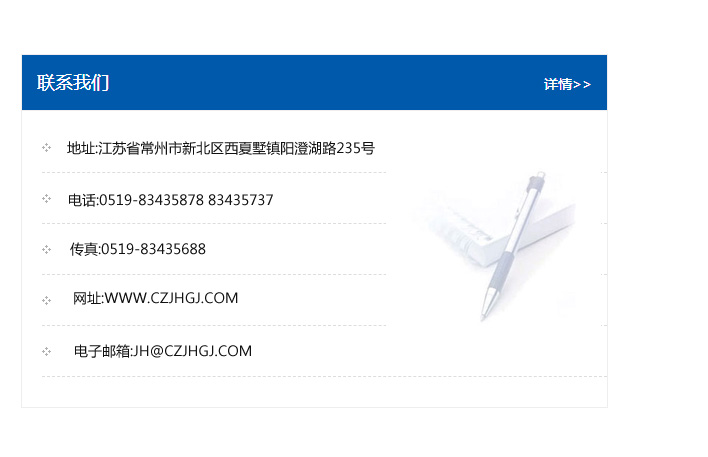 地址:常州市新北區友邦商務大廈1幢16、17層  電話:0519-85101652  傳真:0519-85112595  郵編:213022  網址:www_gsjrzb_cn.jilvw.com  郵箱:xiajifengaa@163.com